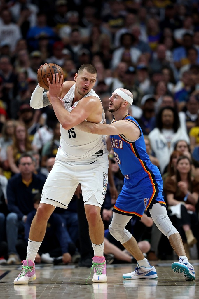 雷霆击败掘金的大方略简单粗暴,尽量锁死约老师,考验掘金其他不稳定的进攻点。