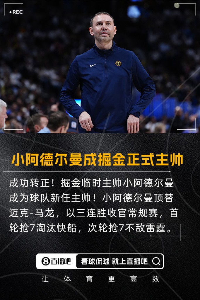 05月23日讯 据ESPN名记Shams Charania报道,多位消息人士透露,掘金和临时主帅小阿德尔曼达成协议,后者正式成为球队下一任主教练。随后,掘金官方宣布小阿德尔曼成为球队新任主教练。