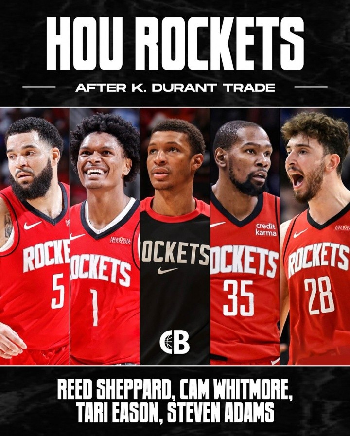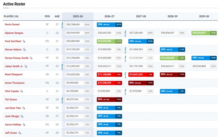 杜兰特、申京、范弗里特、史蒂文-亚当斯、多里安-芬尼-史密斯、小贾巴里-史密斯、里德-谢泼德、阿门-汤普森、卡佩拉、伊森、泰特、奥科吉、阿隆-霍勒迪、杰夫-格林;