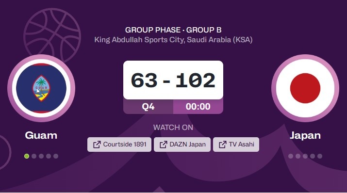 8月10日讯 男篮亚洲杯今天继续进行,日本男篮102比63大胜关岛男篮。